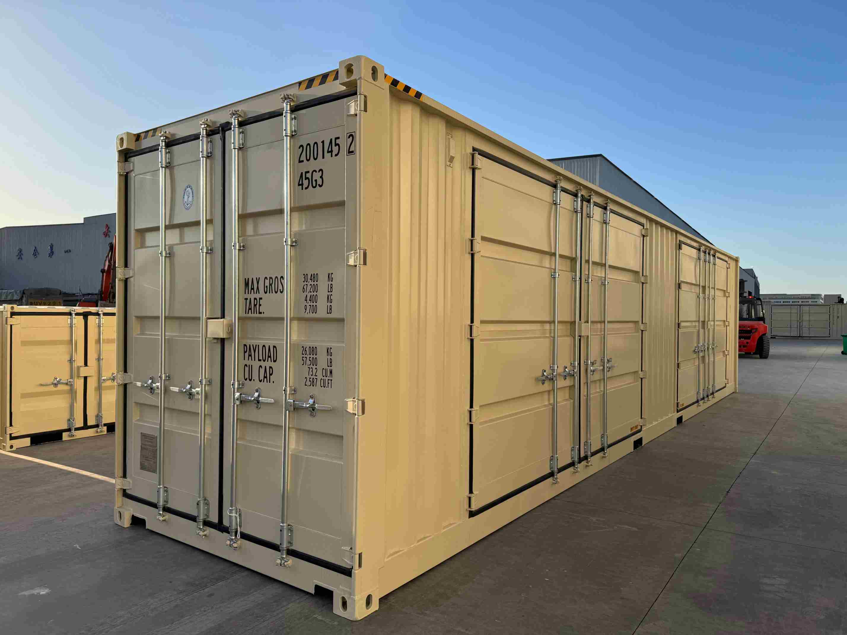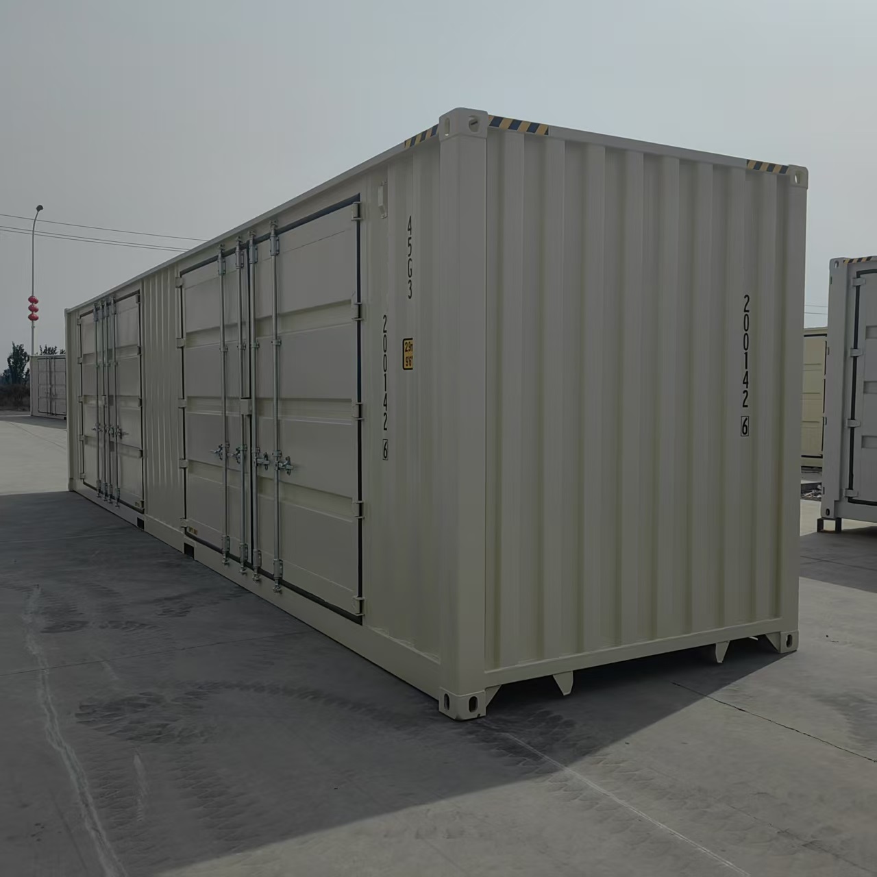 Et af de mest bemærkelsesværdige aspekter af denne container er dens tilpassede sidedørkonfiguration. Tilgængelig med enten to eller fire sidåbningsdøre eller endda en valgfri åbning på fuld side, containeren giver enestående tilgængelighed og fleksibilitet. Siddørsdesignet forbedrer belastning og losningseffektivitet, da det giver mulighed for let og hurtig adgang til lasten fra flere vinkler. Denne funktion letter brugen af specialiseret håndteringsudstyr, reduktion af tid og arbejdsomkostninger.